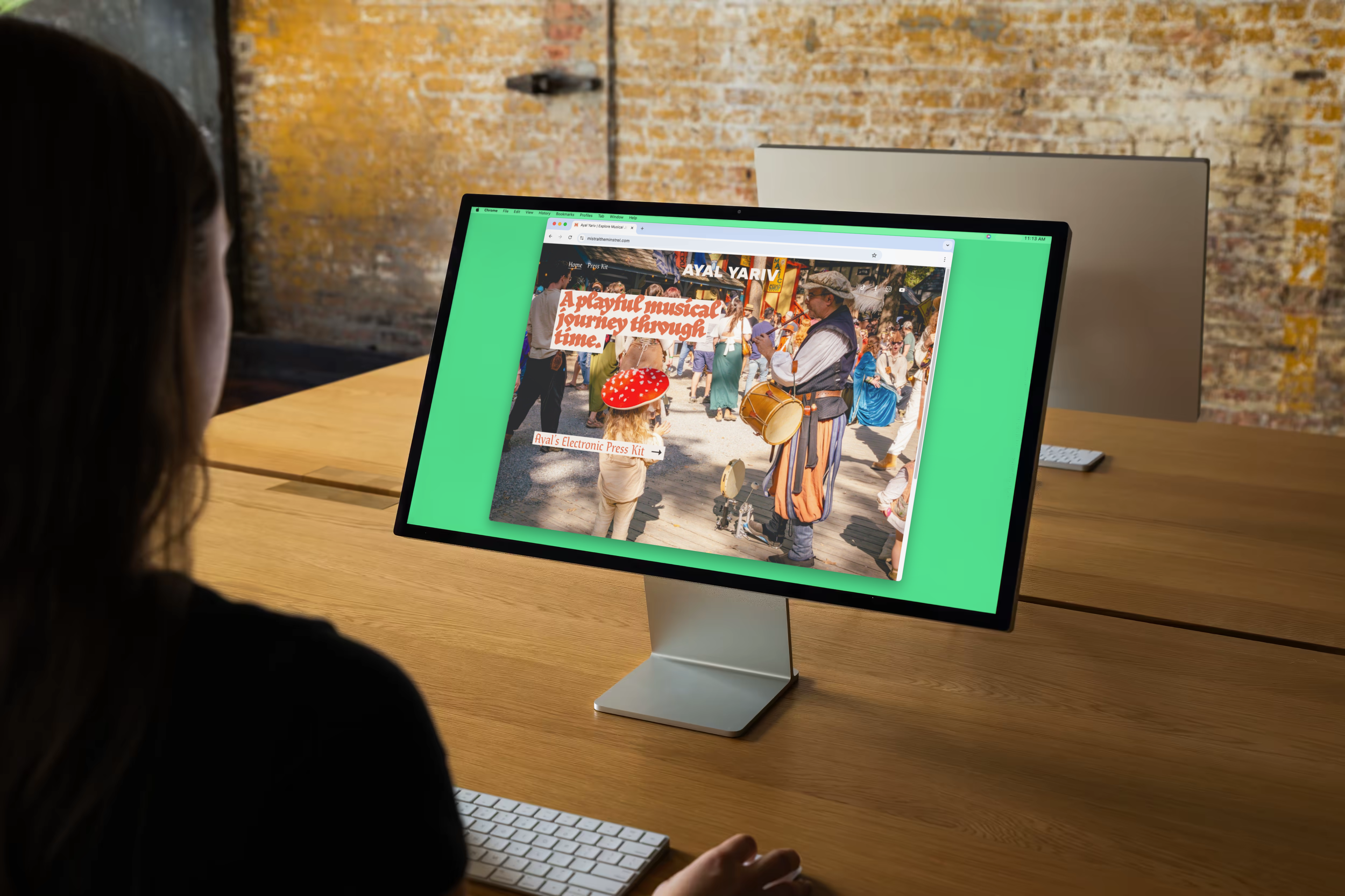For Ayal's EPK, we created a highly functional design with vibrant, eye-catching colors. The moment you land on his EPK, there's no doubt that this is a performer with experience, skill, and dedication.